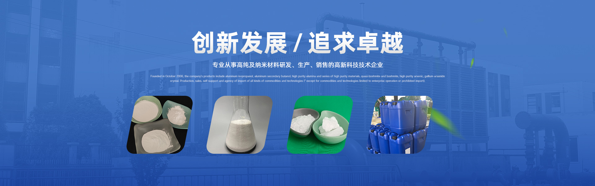 主打產品 異丙醇鋁,仲丁醇鋁,高純氧化鋁及系列高純材料,擬薄水鋁石以及鋁溶膠的生產、銷售,自營和代理各類商品及技術的進口業務(國家限定企業經營或禁止進口的商品合技術除外)(依法須經批準的項目,經相關部門批準后方可開展經營活動) Click me ?